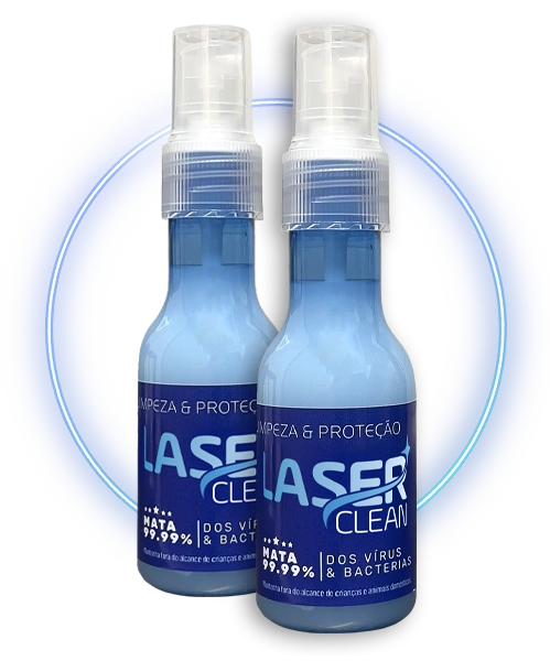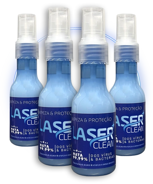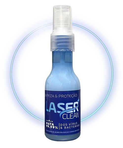 Além do efeito bactericida a vantagem é que a fórmula do LaserClean® não agride as partes plásticas, principalmente partes em acrílico, como o álcool 70º faz, deixando as opacas (fosca) com o uso contínuo.